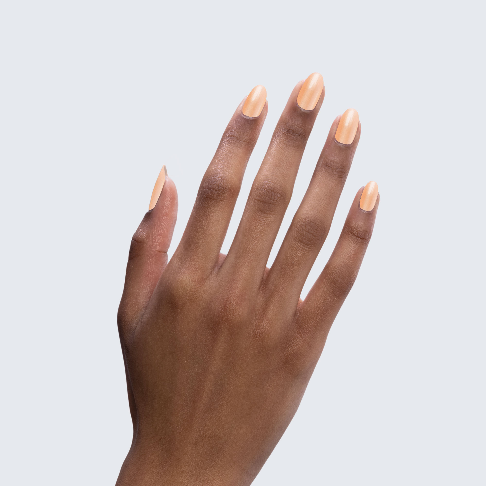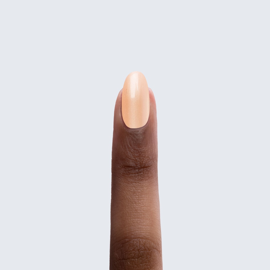 Peachy orange. Pastel. Pearl finish. Opaque. Cool undertone.